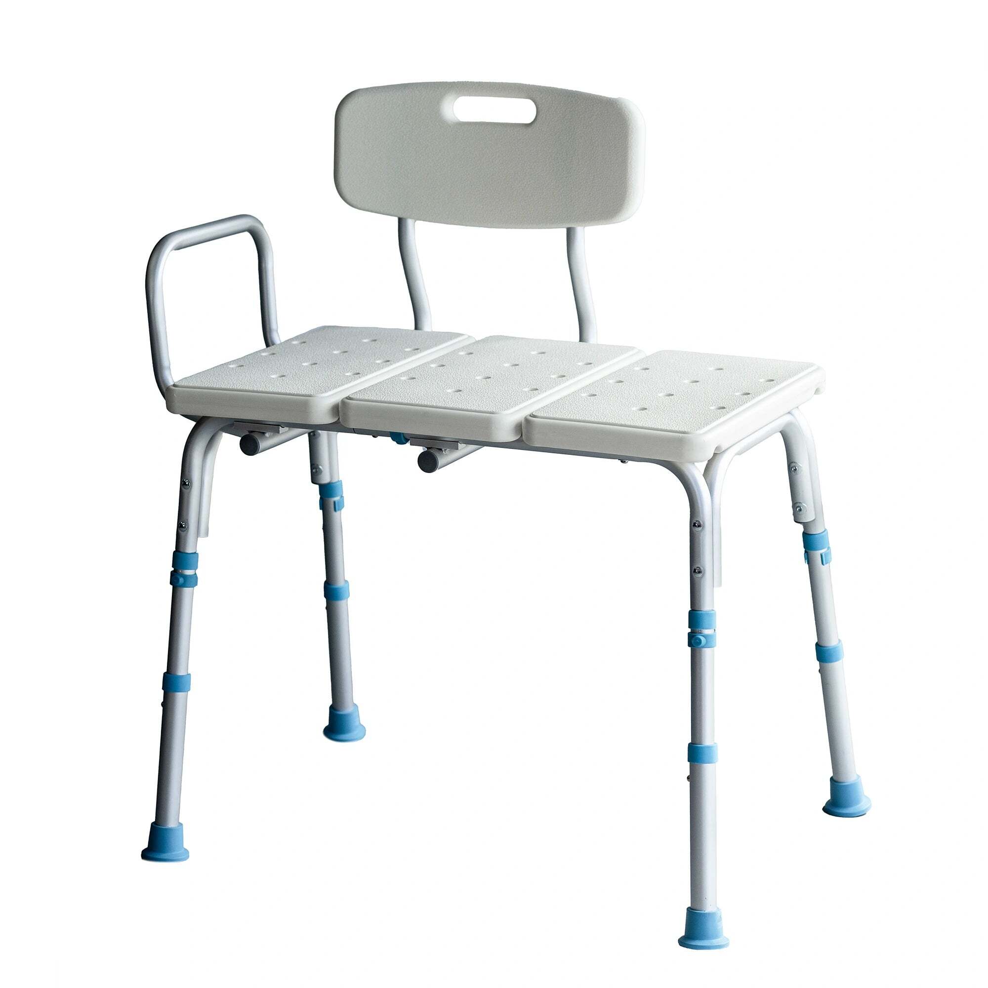 This transfer bench also features height adjustments of 10.2 cm in 1.2 cm increments, making it easy to find the perfect fit for any user. The molded seat and backrest provide comfort and stability.