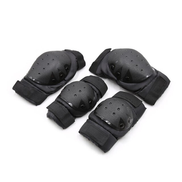 A pair of knee pads & elbow pads for use in BDSM &/or Puppy Play. Made of plastic & textile. Velcro fastener straps.