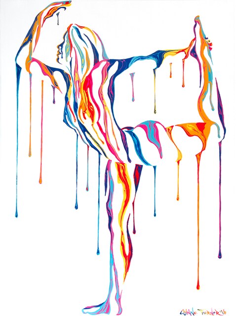 Playful girl. Vibrant line art printed on canvas. Image 3 in a series of 3.