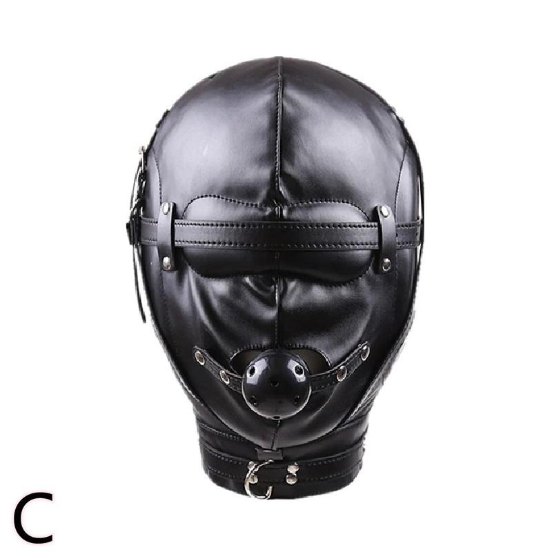 BDSM hood of synthetic (PU) leather for sensory deprivation.