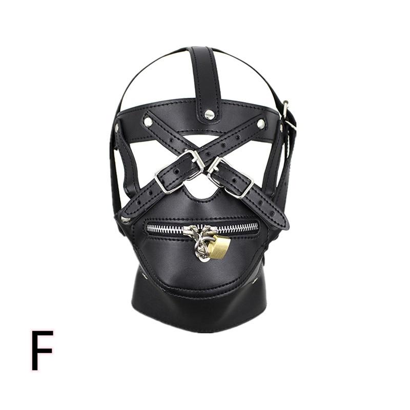 Features: zipper mouth with lock, adjustable straps over eyes.