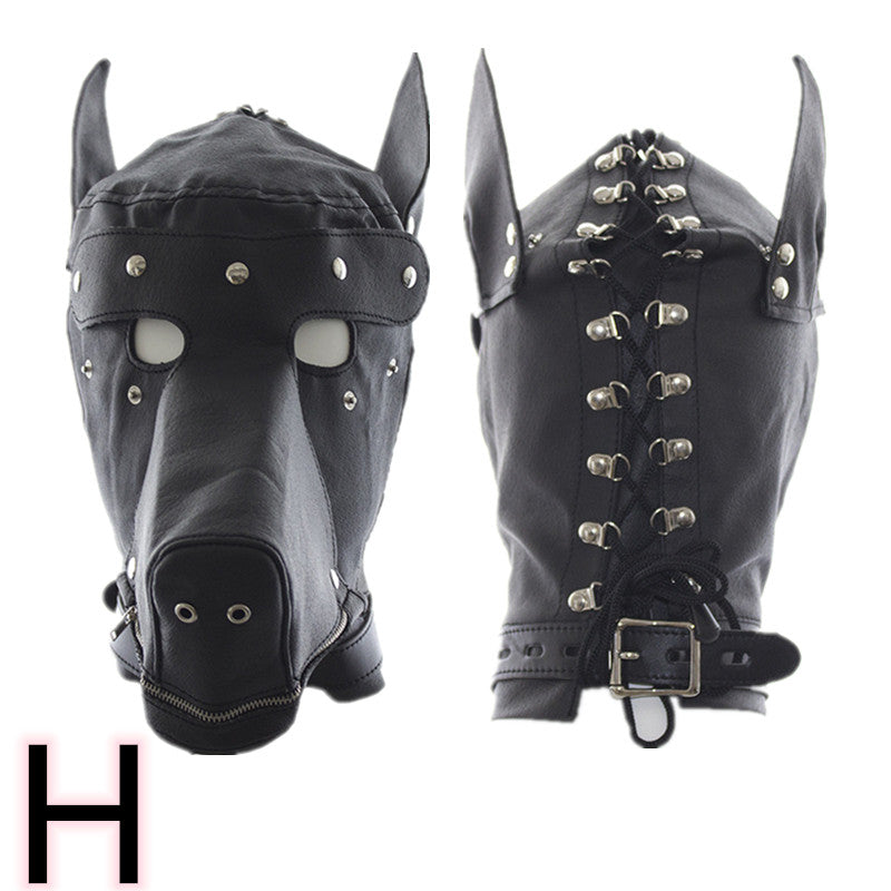 BDSM hound hood of synthetic (PU) leather. Open eyes & nostrils. No sensory loss.