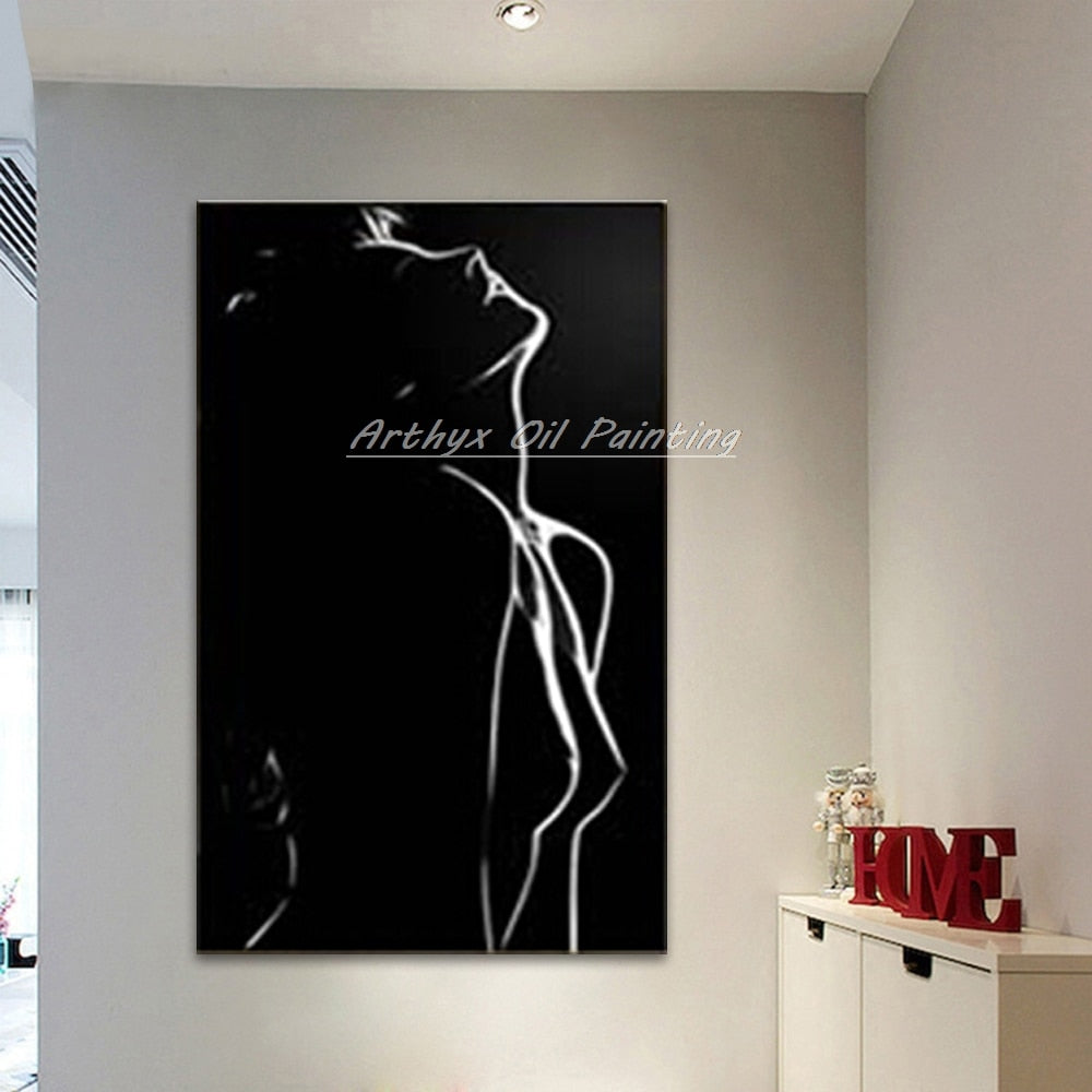 Product reference: Arthyx Art Hand Painted Elegant Black Nude Oil Painting On Canvas Sexy Nude Beauty in Darkness Wall Pictures For Home Decoration